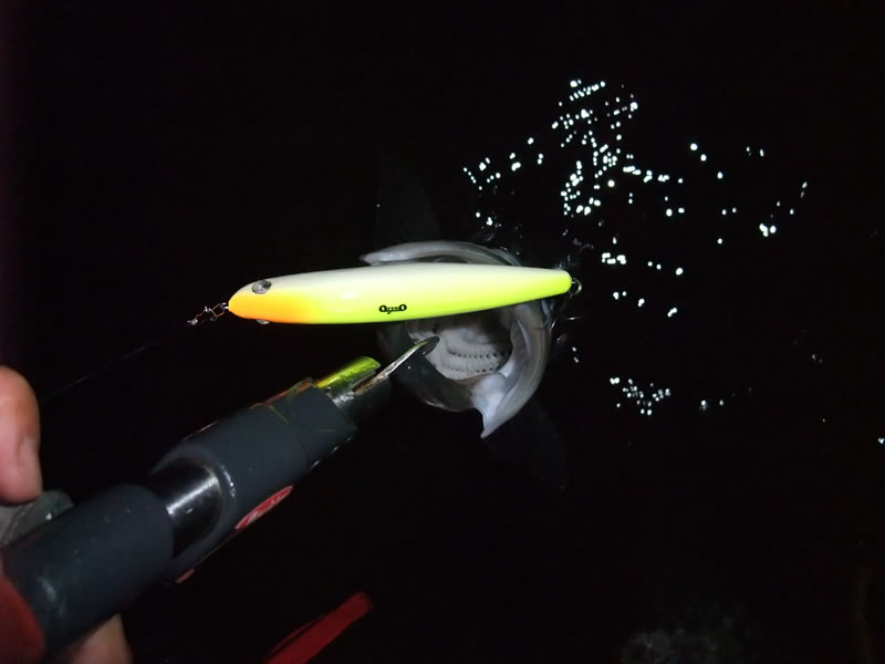 10日某所 19:30 届いたばかりのアブ新製製ロッド&リールで ファ-ストキャッチが物凄く臭いボラ。 臭いにやられ即撤収。 10日某所 20:30 ポイントを変え、ディープウェーデイング。 ファ-ストキャストで巨匠の約1m目前でランカーシーバスがバイト! 有り得ない水柱が目前で立ち、少しばかり毛が抜ける。 katanaの場合・・・ 10日某所 21:30 実釣開始から2時間経過 やっとバイトを拾う。 ティップを水面につっこんだままリーリング。 ランディング寸前、自らのラインに己が巻かれ 巨匠に救出してもらう。 更にウェーダーにフッキング、少し浸水。 ちなみにランディングしたシーバスは 何故かヒゲのついていた。 トザ@の場合・・・ 10日某所 22:00 某所に合流。 ファ-ストバイトをものにするが フッキング直後 想像できない有り得ないアクシデントに見舞われる。 約3分間ほど、ルアーマンではなく、フライマンと化す。 コントのような夜の水際での出来事の詳細は・・・ 明日か来週のサーチブログにて。 |