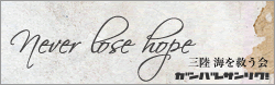 「三陸海を救う会」を発足させました。 宮城ソルトルアーサイトキャプチャー内に 公式サイト開設いたしました。 会の発足の理由は簡単且つ明瞭。 1人より2人。 2人より3人。 ひとりでも多くの人が同じ目標、プロジェクトに向けて 行動を共にすることによって生まれる生産性は 1+1=100ということ。 毛利元就の矢の話ではないですが 個人レベルでボランティア活動「俺の身内でやります」なんてのは 私的には非効率且つひとりよがり。 同調圧力とかじゃなく、生産性のこと。 幾許かのパワーバランスや複雑な事情も絡み合う 人間関係どーこーなんて、もはや意味が無い。 釣り人にとって釣り場環境の復興無くして 釣りを語れるまい。 現場無くして果たしてどーする。 今回の震災の影響で廃業を余儀なくされた遊漁船も数多い。 日本海に遠征するアングラーも増えるだろう。 この状況下、どう見積もっても 宮城から疎遠するアングラーが急増するのは必死。 現場復旧即ち地域復興が当然急がれる。 このプロジェクトが認められてもなれなくても 万が一、結果が伴わなくとも また、笑って釣りができるなら それでいい。 また、あの街で旨い酒が飲めるなら それでいい。 NEVER LOSE HOPE。 俺も希望は捨てていない。 PR |