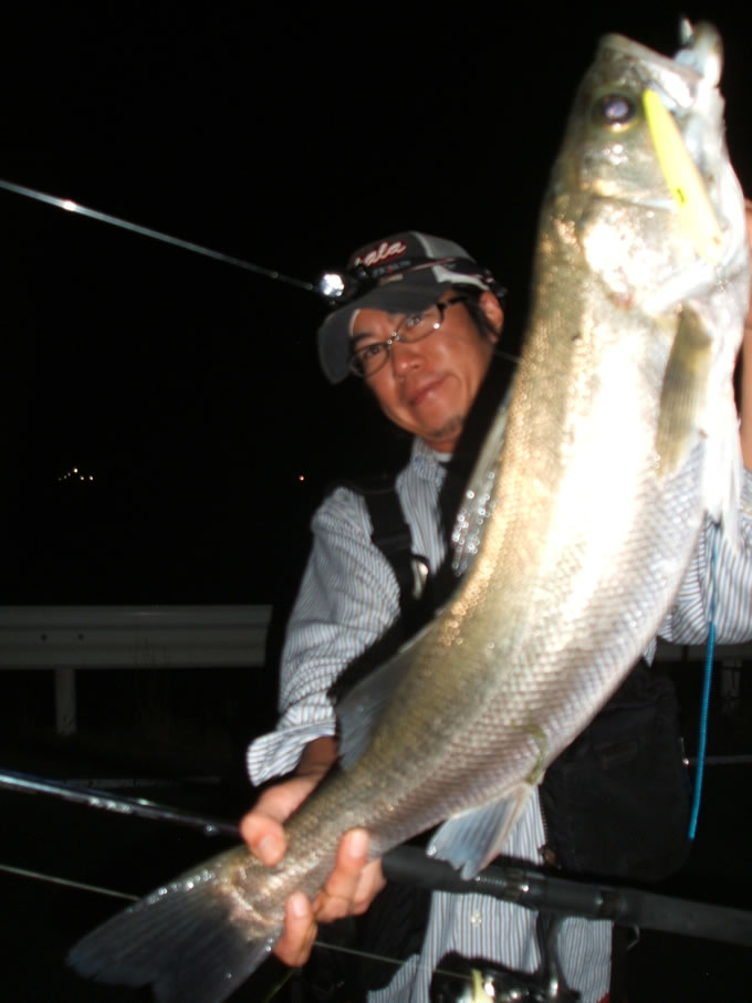 10日某所 19:30 届いたばかりのアブ新製製ロッド&リールで ファ-ストキャッチが物凄く臭いボラ。 臭いにやられ即撤収。 10日某所 20:30 ポイントを変え、ディープウェーデイング。 ファ-ストキャストで巨匠の約1m目前でランカーシーバスがバイト! 有り得ない水柱が目前で立ち、少しばかり毛が抜ける。 katanaの場合・・・ 10日某所 21:30 実釣開始から2時間経過 やっとバイトを拾う。 ティップを水面につっこんだままリーリング。 ランディング寸前、自らのラインに己が巻かれ 巨匠に救出してもらう。 更にウェーダーにフッキング、少し浸水。 ちなみにランディングしたシーバスは 何故かヒゲのついていた。 トザ@の場合・・・ 10日某所 22:00 某所に合流。 ファ-ストバイトをものにするが フッキング直後 想像できない有り得ないアクシデントに見舞われる。 約3分間ほど、ルアーマンではなく、フライマンと化す。 コントのような夜の水際での出来事の詳細は・・・ 明日か来週のサーチブログにて。 |